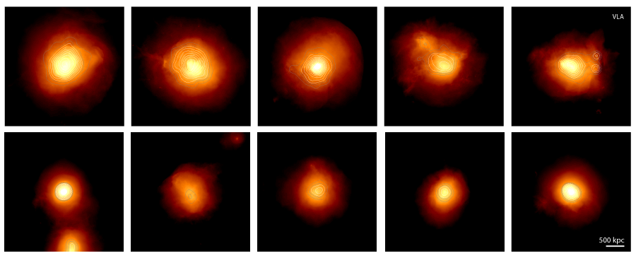 Galaxy Clusters are the largest collapsed objects in our Universe. They do not only contain hundreds of member galaxies (shown above), but also a large reservoir of dilute, hot intra-cluster gas. Observations of this gas component yielded a number of puzzling results which up to now theoretical astrophysicists struggle to explain. One of these results is the existence of extended radio-emission from some galaxy clusters, which is a sign for the presence of magnetic fields and high-energy electrons in these systems. As IllustrisTNG models the presence and amplification of primordial magnetic fields during the collapse of structure in the early universe, we are able to self-consistently study the magnetic properties of the gas in different environments: in low-density regions and cosmic filaments, the magnetic fields closely follow the expectation from adiabatic compression of the primordial field during structure formation, keeping the orientation. In collapsed objects however, where the density is significantly higher, there is an efficient amplification of the magnetic field to about 5 orders of magnitude above the value expected from adiabatic compression alone. The topology of the magnetic field in these regions is consequently strongly correlated with the topology of the gas-flows: the magnetic field in disc galaxies is ordered and disc-like with field strengths of about 10 micro-Gauss, while the magnetic field in elliptical galaxies is unordered, reflecting the chaotic gas motions in these systems.