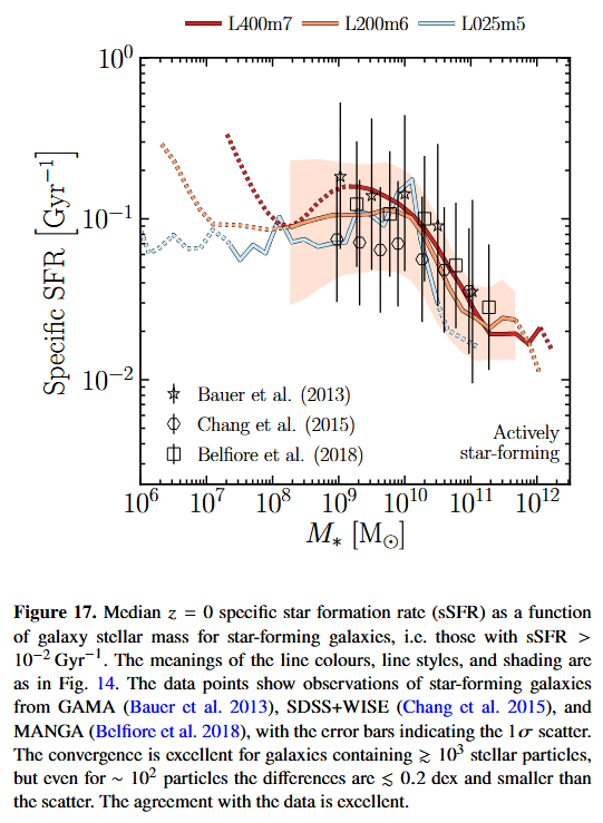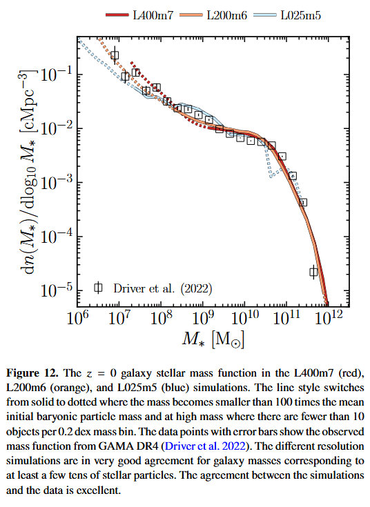 | COLIBRE L400m7 | COLIBRE | 2025 | SWIFT | $400.0$ | $3008^3$ | $4 \times 3008^3$ | $1.5 \times 10^7$ | $1.9 \times 10^7$ | $3.6$ | ? | 0 | Schaye+25 | - | - | - | - | - | - | - | - | ||||||||||||||
