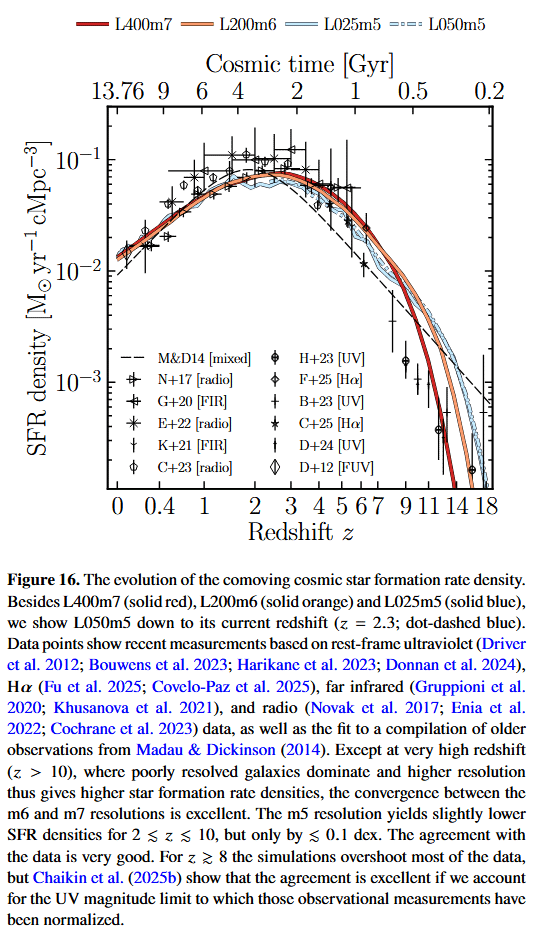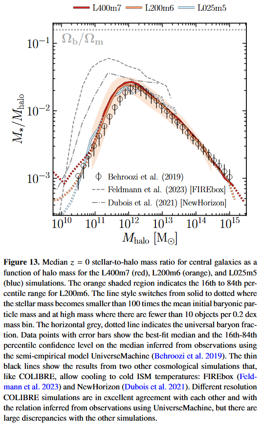 | COLIBRE L25m5 | COLIBRE | 2025 | SWIFT | $25.0$ | $752^3$ | $4 \times 752^3$ | $2.3 \times 10^5$ | $3.0 \times 10^5$ | $0.9$ | ? | 0 | Schaye+25 | - | - | - | - | - | - | - | - | ||||||||||||||