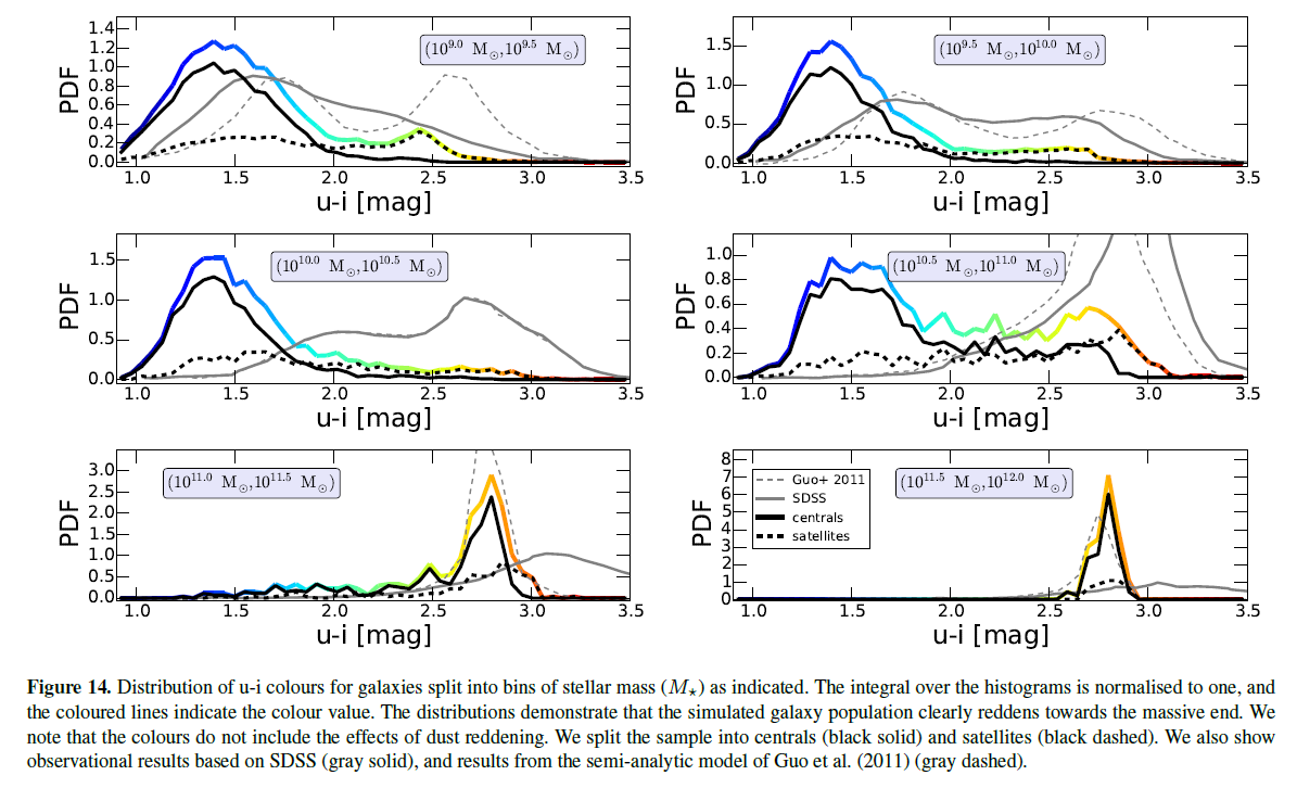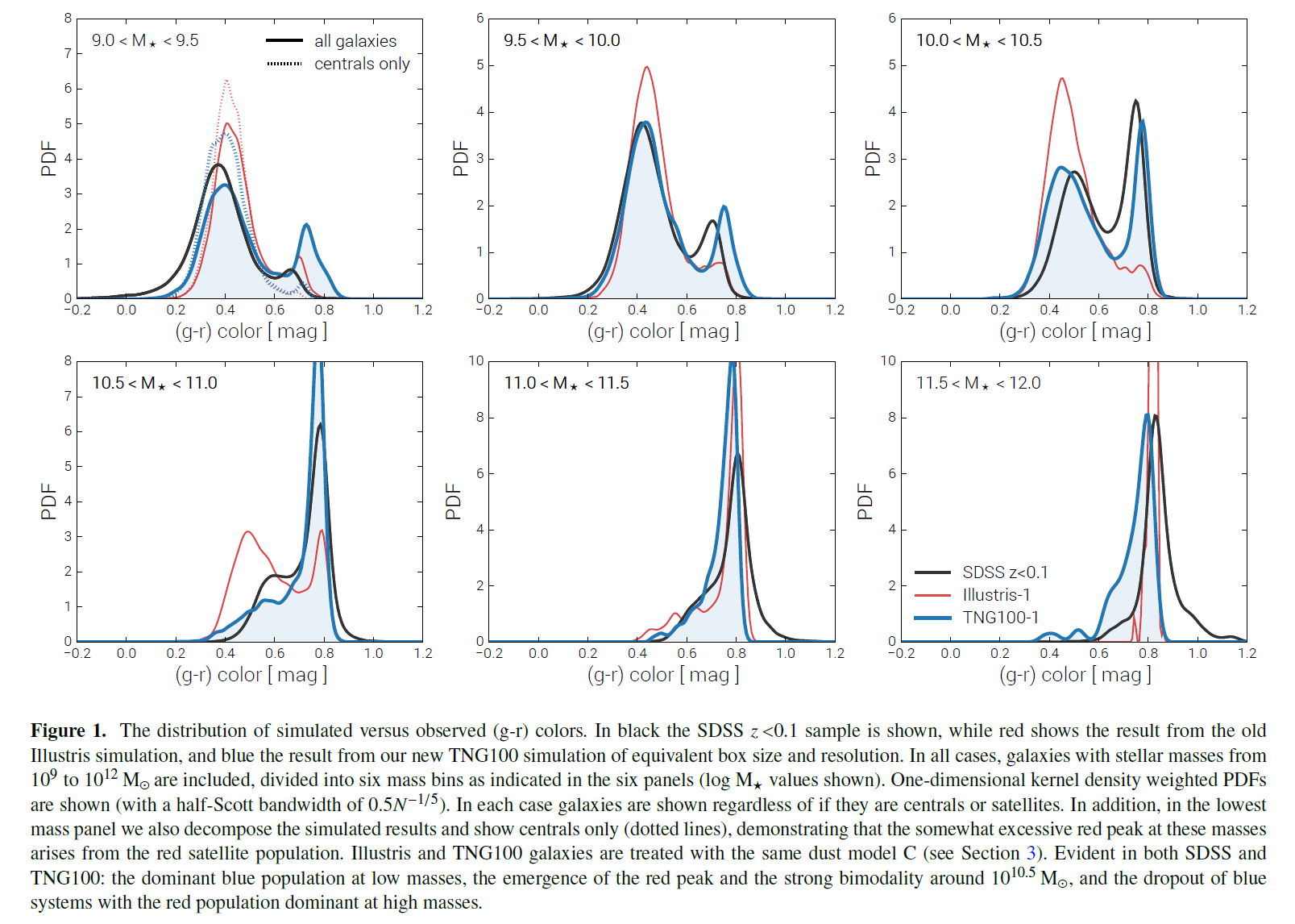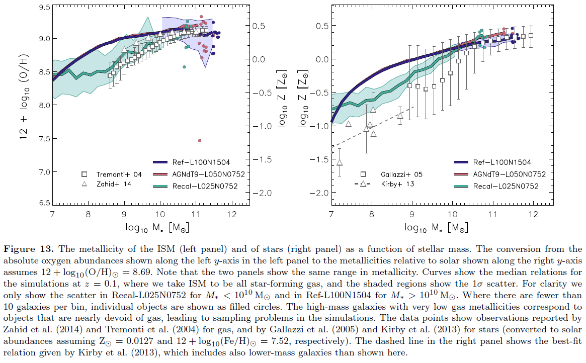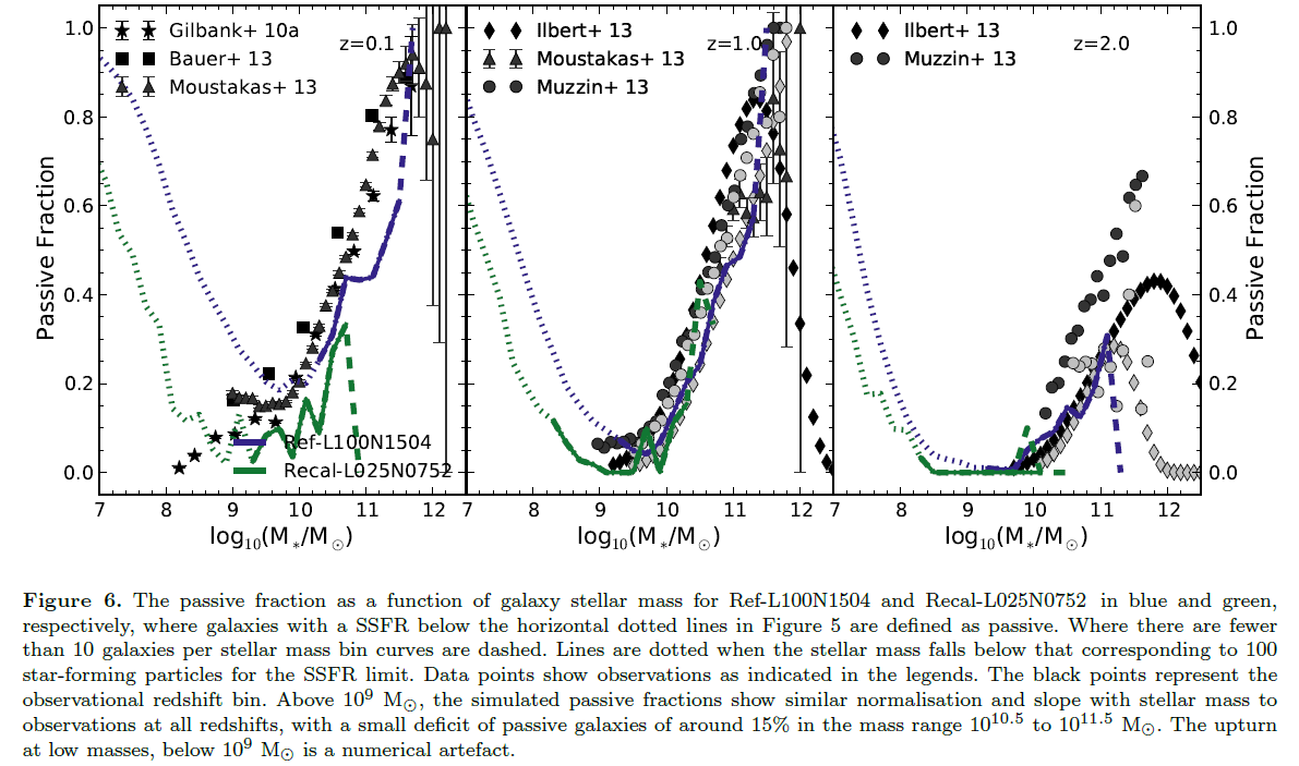 Since all simulations below broadly aim to reproduce the diversity of the galaxy population, they typically include models for star formation, stellar evolution and heavy element production, radiative (metal) cooling, stellar feedback, and supermassive black hole feedback. The details and sophistication of these models differ between simulations, as do their results and outcomes.