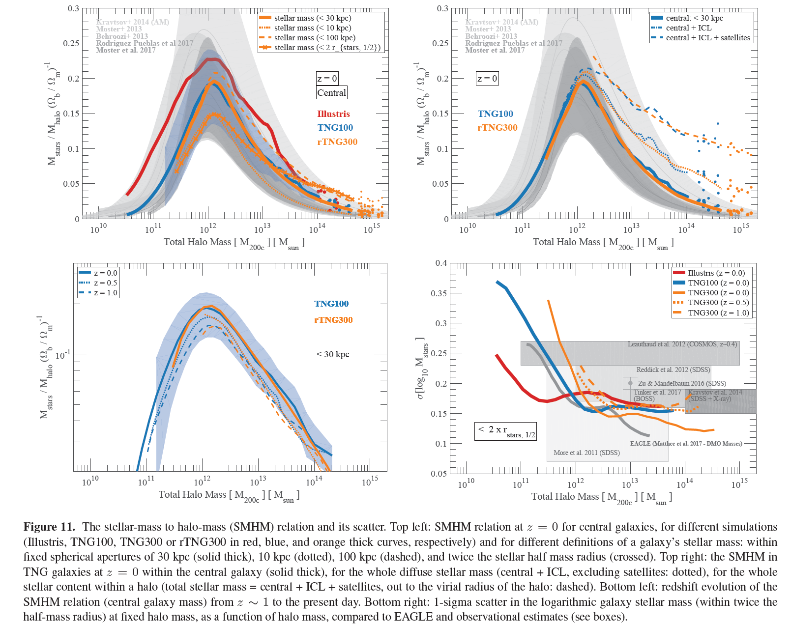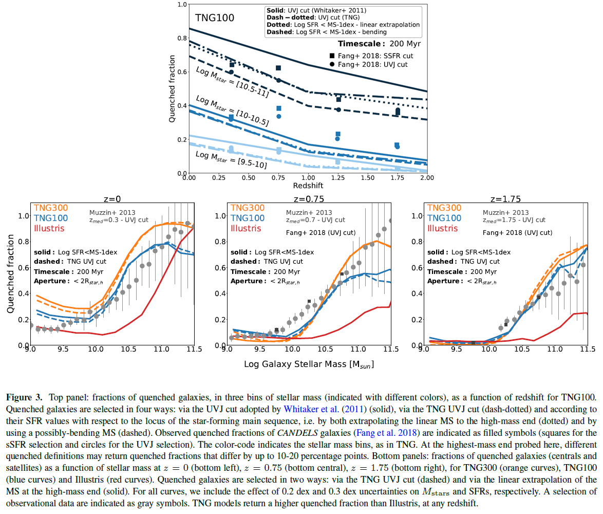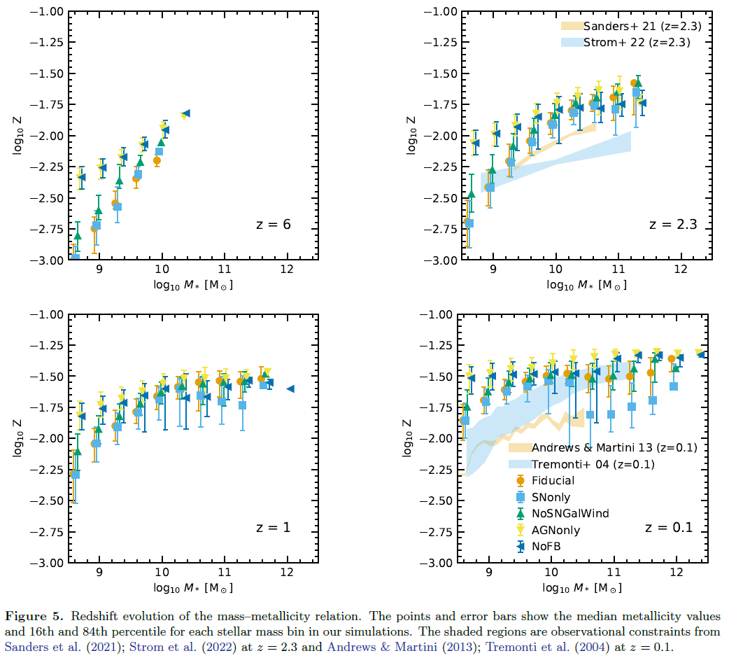 Since all simulations below broadly aim to reproduce the diversity of the galaxy population, they typically include models for star formation, stellar evolution and heavy element production, radiative (metal) cooling, stellar feedback, and supermassive black hole feedback. The details and sophistication of these models differ between simulations, as do their results and outcomes.