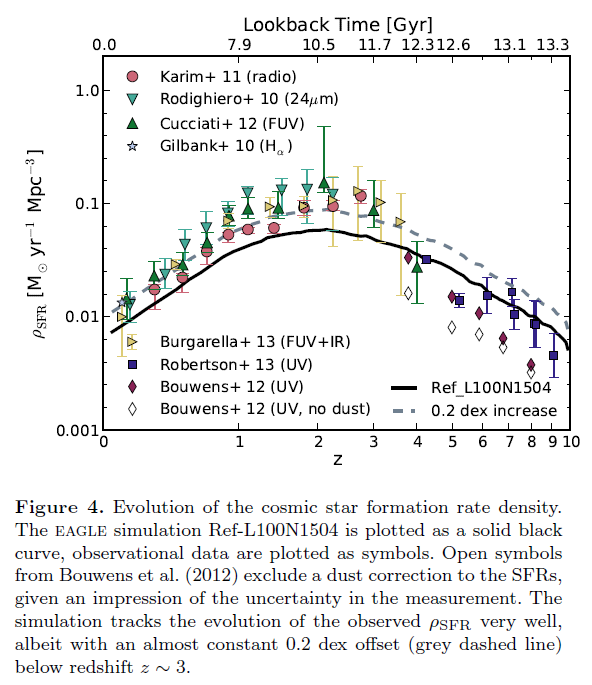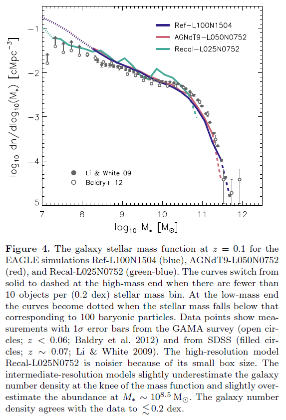 Eagle | Eagle | 2015 | GADGET-3 | $100$ | $1504^3$ | $1504^3$ | $1.8 \times 10^6$ | $9.7 \times 10^6$ | $0.7$ | $1.1$ | 0 | Schaye+15 | - | - | - | - | - | |||||||||||||||||