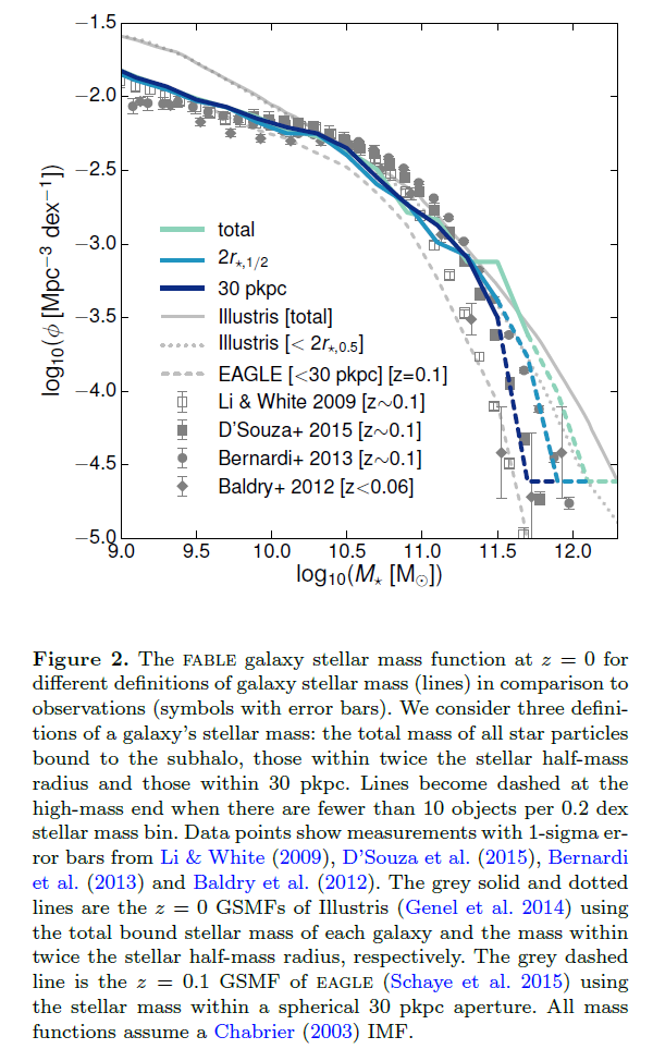 FABLE | FABLE | 2018 | AREPO | $58.9$ | $512^3$ | $512^3$ | $9.4 \times 10^6$ | $5.0 \times 10^7$ | $3.5$ | ? | 0 | Henden+18 | ? | - | - | - | - | - | - | - | - | - | - | - | - | - | ||||||||