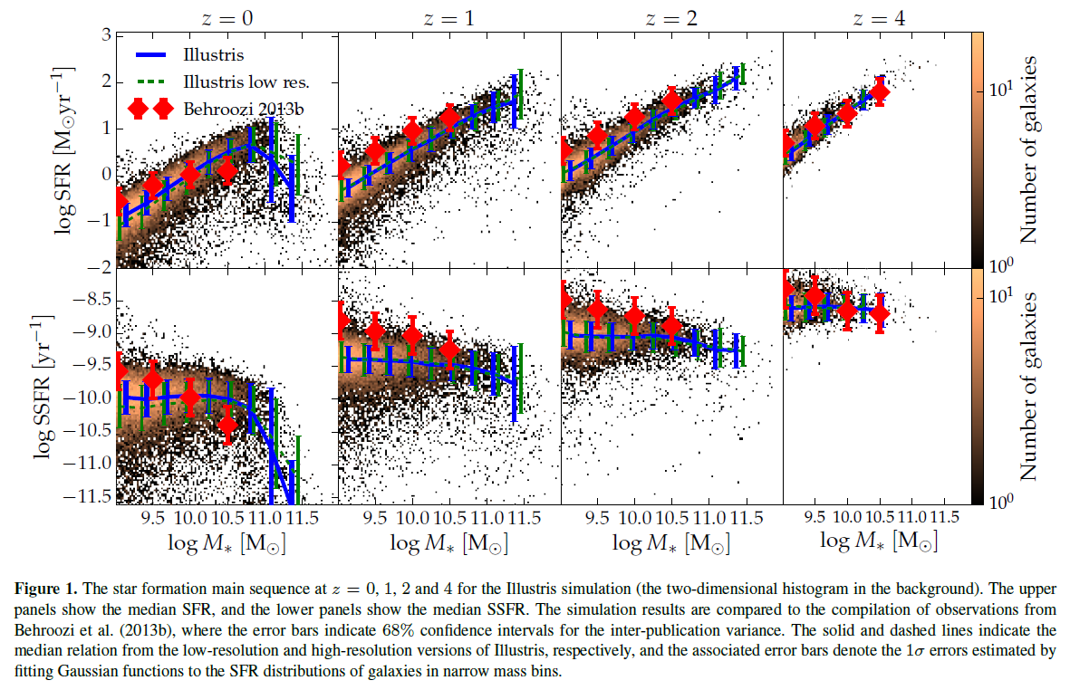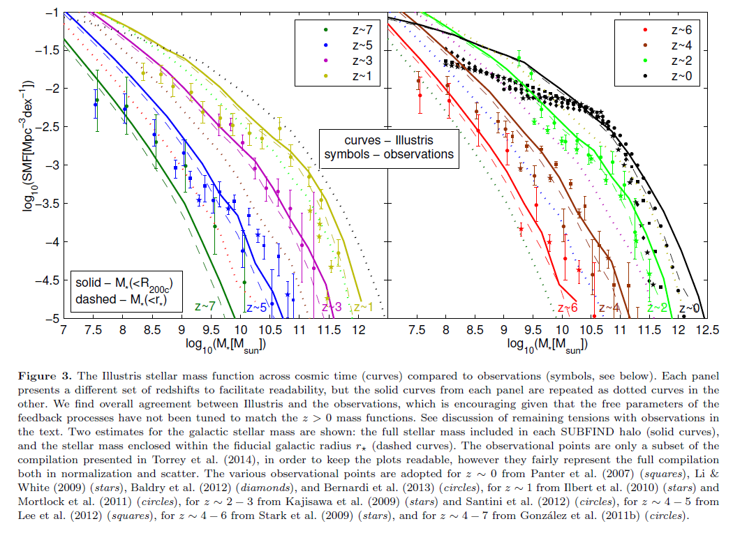 Illustris | Illustris | 2014 | AREPO | $106.5$ | $1820^3$ | $1820^3$ | $1.3 \times 10^6$ | $6.3 \times 10^6$ | $0.7$ | $0.7$ | 0 | Vogelsberger+14 Genel+14 Sijacki+15 | - | - | - | - | - | |||||||||||||||||