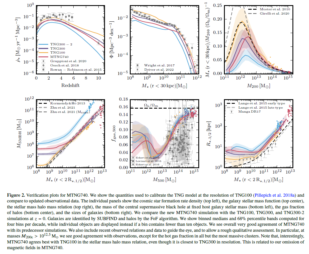MillenniumTNG | MillenniumTNG | 2022 | AREPO | $740$ | $4320^3$ | $4320^3$ | $3.1 \times 10^7$ | $1.7 \times 10^8$ | $3.7$ | $1.1$ | 0 | Hernandez-Aguayo+23, Pakmor+23 | , | - | - | - | - | - | - | - | - | - | - | - | ||||||||||