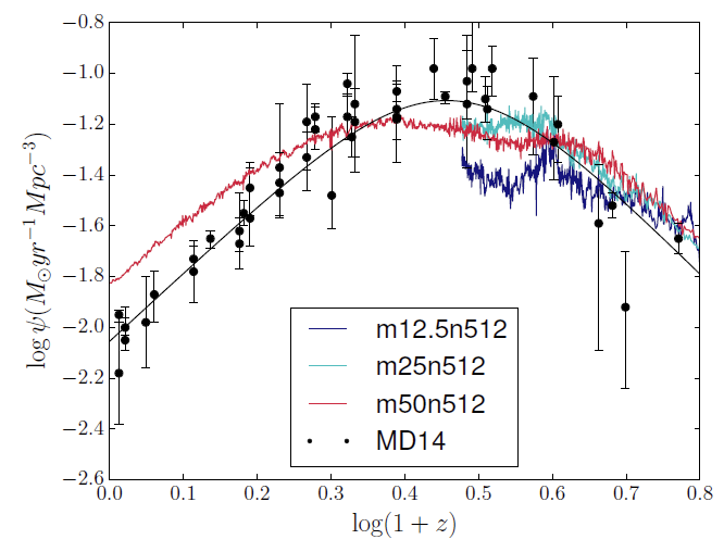 Magneticum 4uhr | Magneticum | 2014 | GADGET-3 | $68.2$ | $576^3$ | $576^3$ | $1.4 \times 10^7$ | $5.1 \times 10^7$ | $2.0$ | ? | 0 | Hirschmann+14 | ? | - | - | - | - | - | - | - | - | - | - | - | ||||||||||