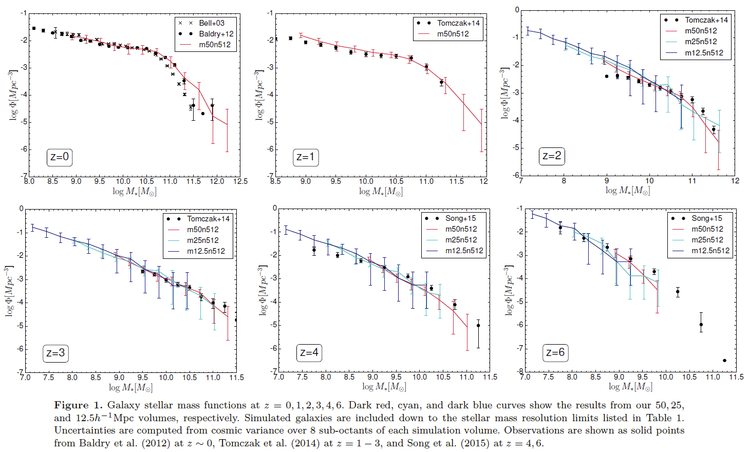 HorizonAGN | HorizonAGN | 2015 | RAMSES | $142$ | ? | $1024^3$ | --- | $8.0 \times 10^7$ | ? | $1.0$ | 0 | Dubois+14 | ? | - | - | - | - | - | - | - | - | - | - | - | - | |||||||||