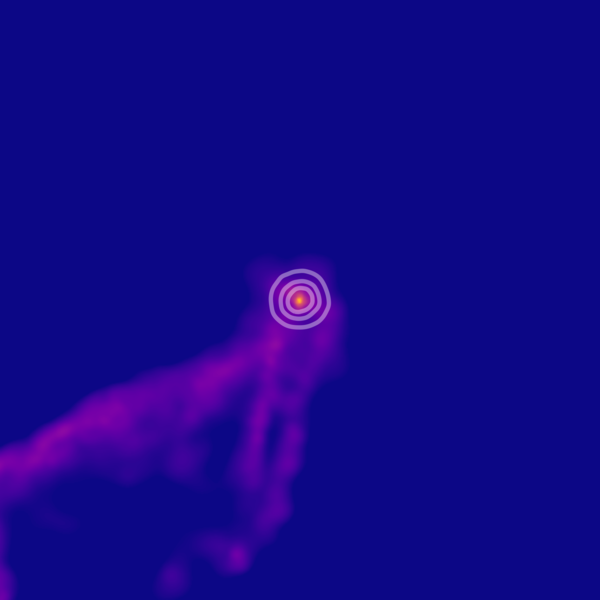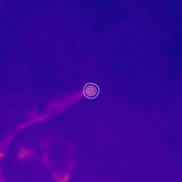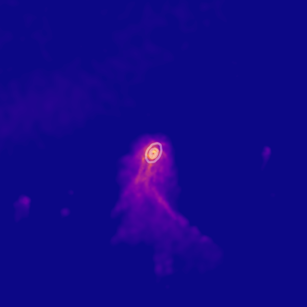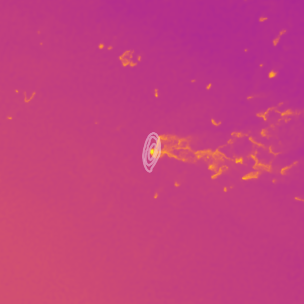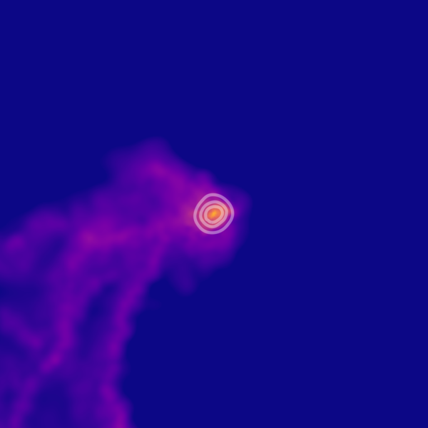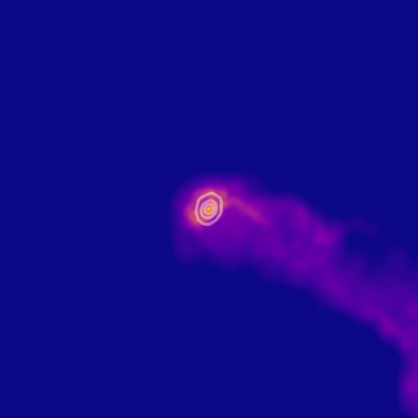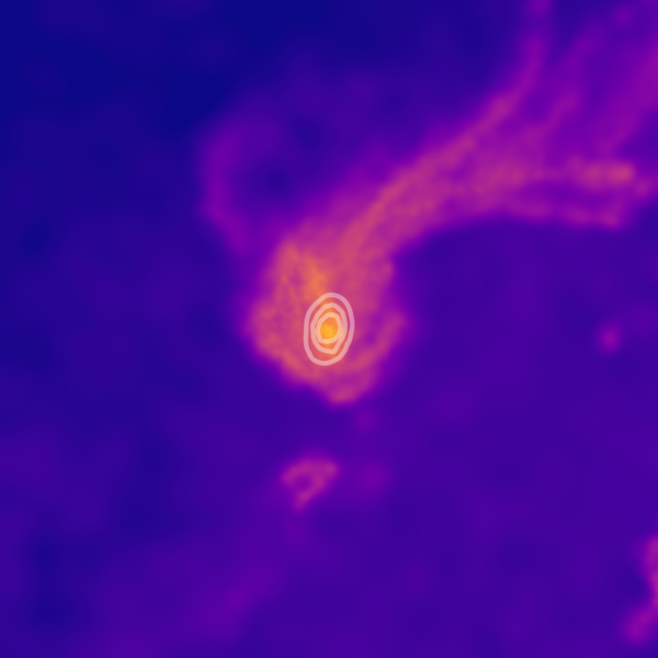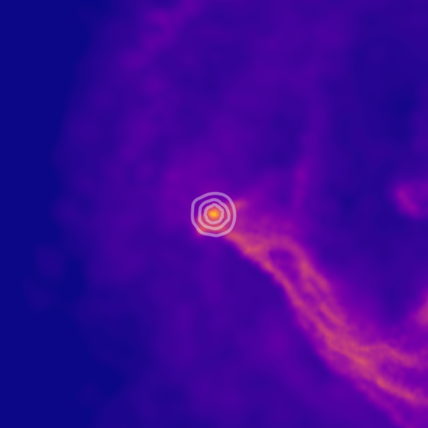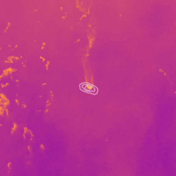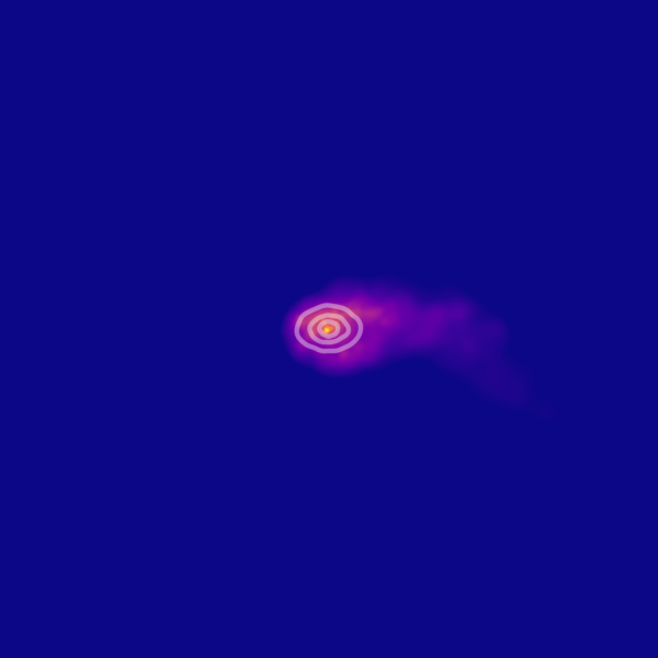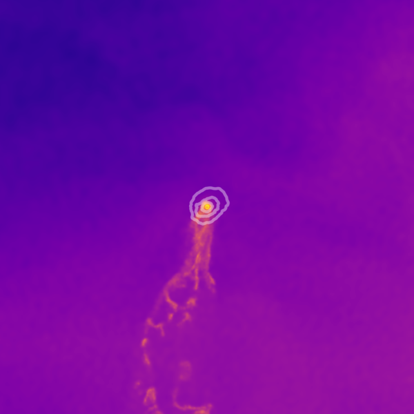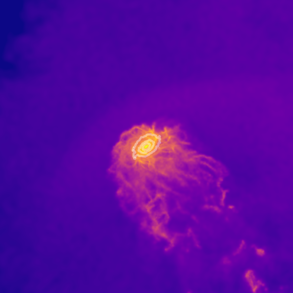 These images are taken from the Zooniverse Cosmological Jellyfish project, see Zinger+ (2023). They show a visualization of projected gas density, overlaid with contours of stellar density, for galaxies which were voted as "Jellyfish" by citizen scientists. Each galaxy was classified twenty times, and sixteen or more positive classifications were required to accept the object as a high probability Jellyfish. Contains a mix of galaxies from TNG50 and TNG100 across multiple redshifts.
