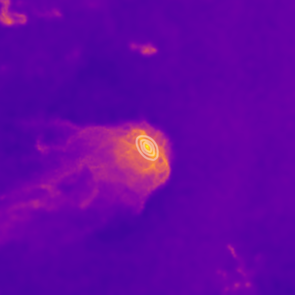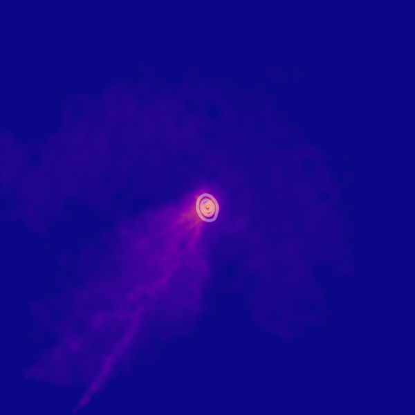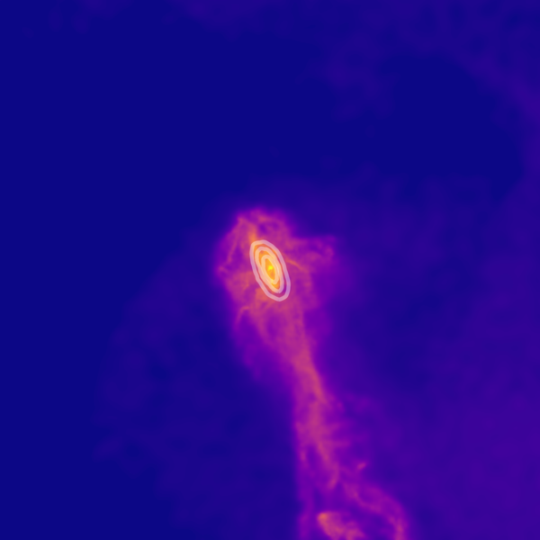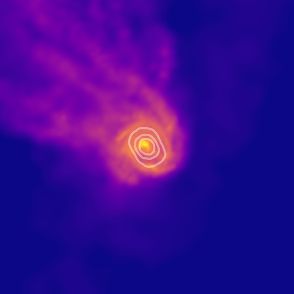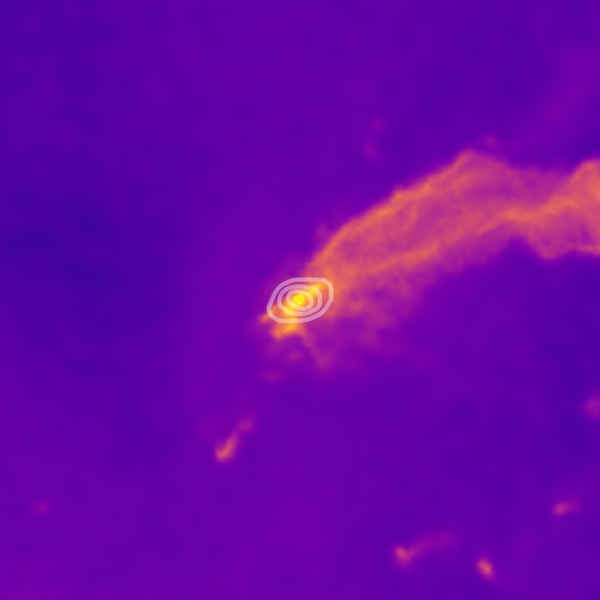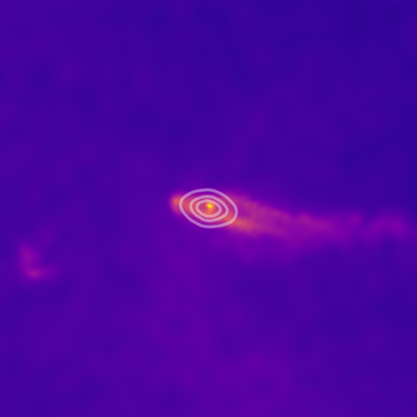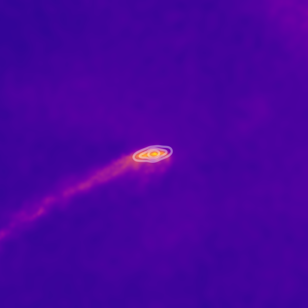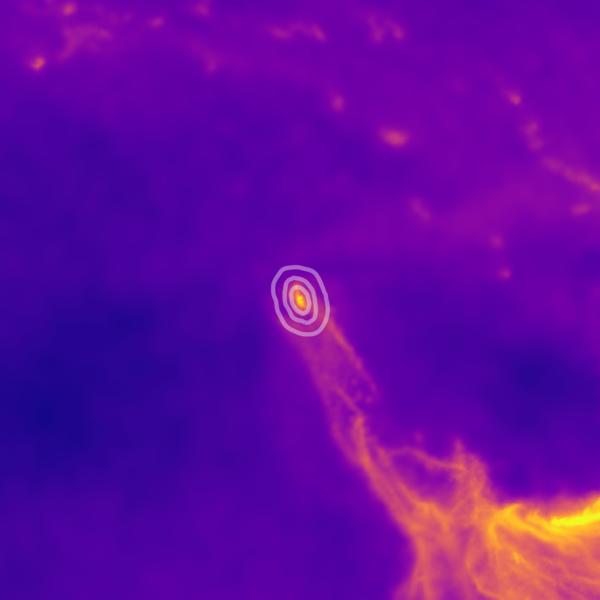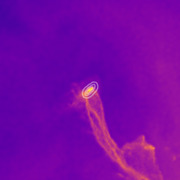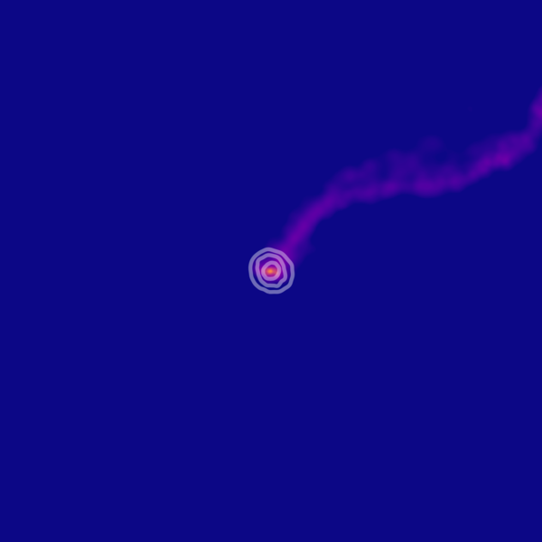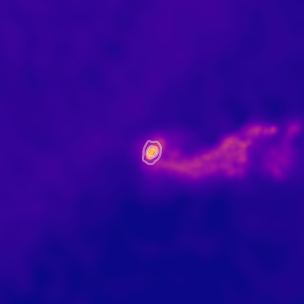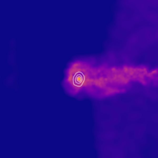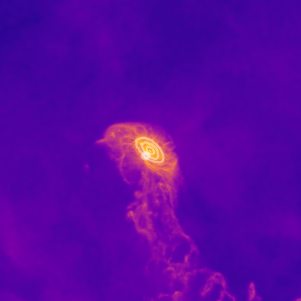 These images are taken from the Zooniverse Cosmological Jellyfish project, see Zinger+ (2023). They show a visualization of projected gas density, overlaid with contours of stellar density, for galaxies which were voted as "Jellyfish" by citizen scientists. Each galaxy was classified twenty times, and sixteen or more positive classifications were required to accept the object as a high probability Jellyfish. Contains a mix of galaxies from TNG50 and TNG100 across multiple redshifts.