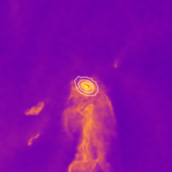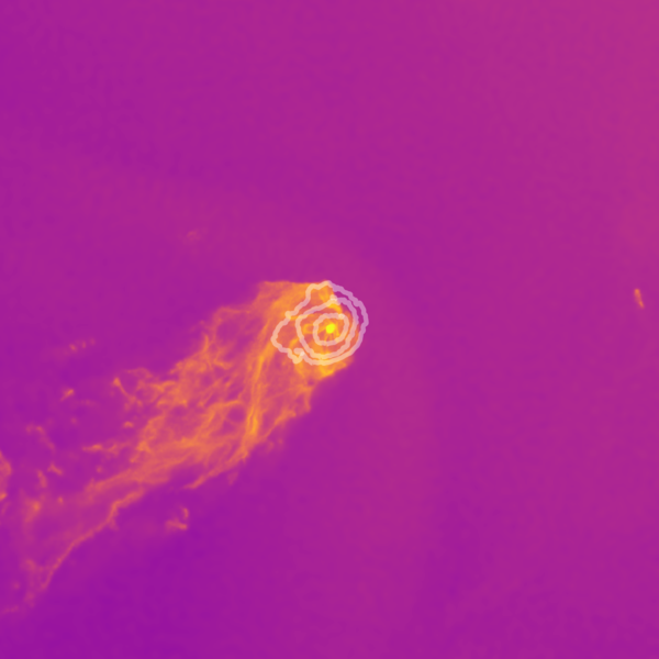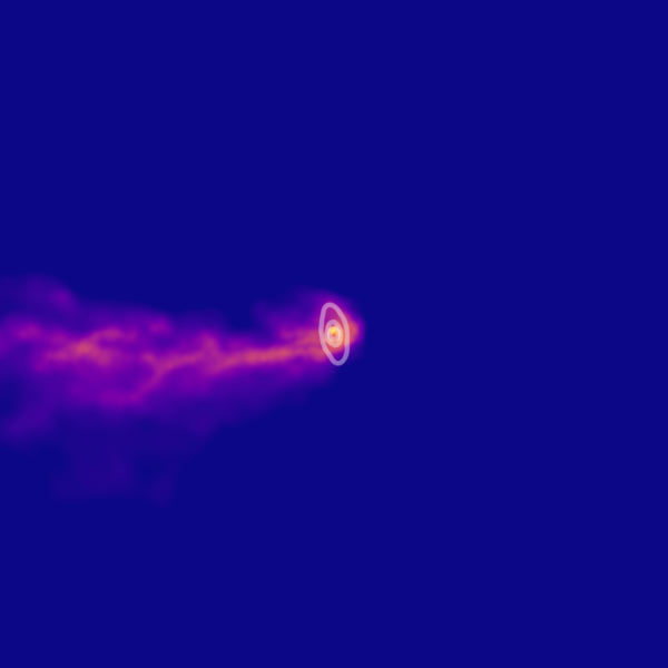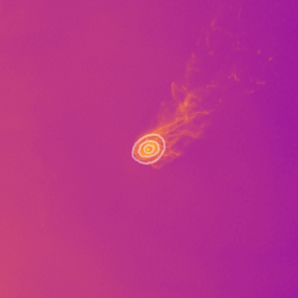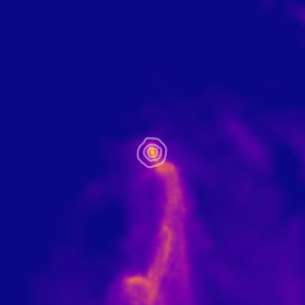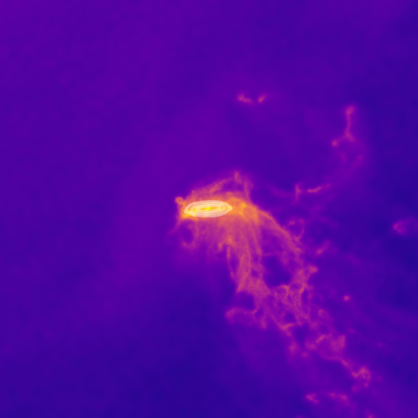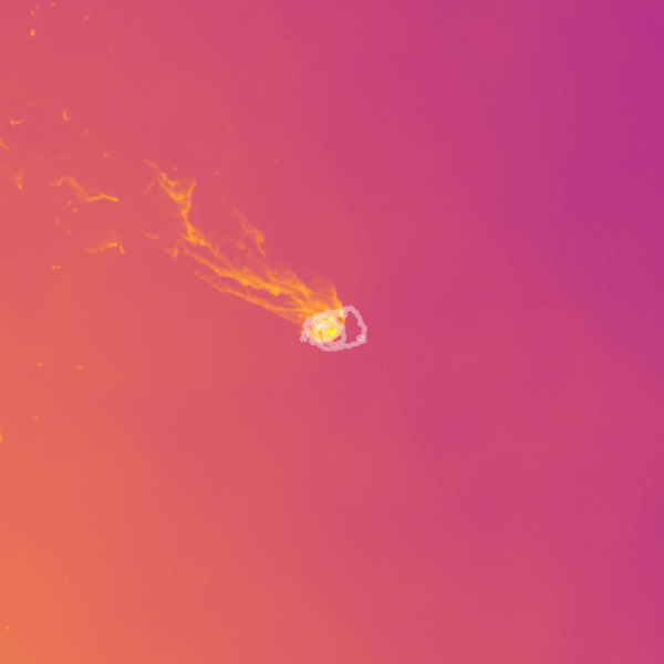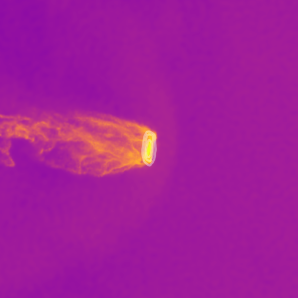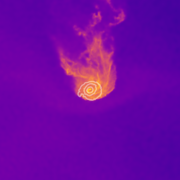 These images are taken from the Zooniverse Cosmological Jellyfish project, see Zinger+ (2023). They show a visualization of projected gas density, overlaid with contours of stellar density, for galaxies which were voted as "Jellyfish" by citizen scientists. Each galaxy was classified twenty times, and sixteen or more positive classifications were required to accept the object as a high probability Jellyfish. Contains a mix of galaxies from TNG50 and TNG100 across multiple redshifts.