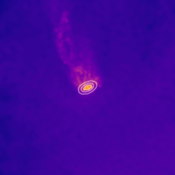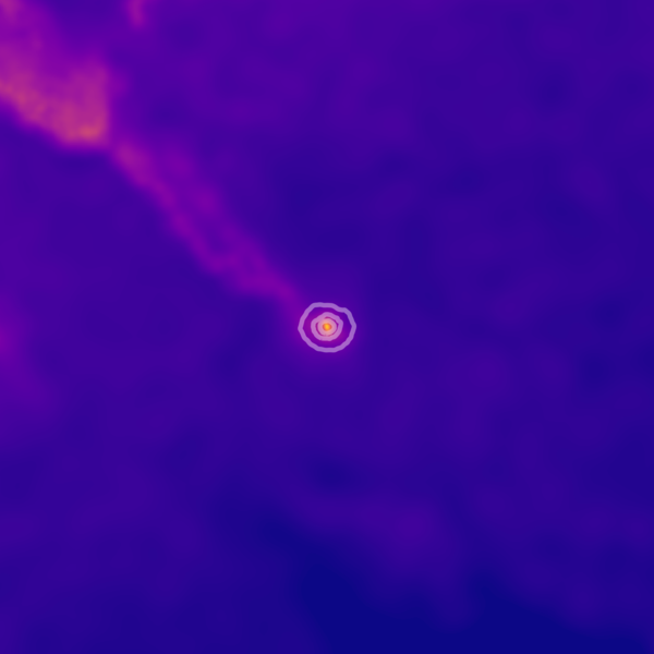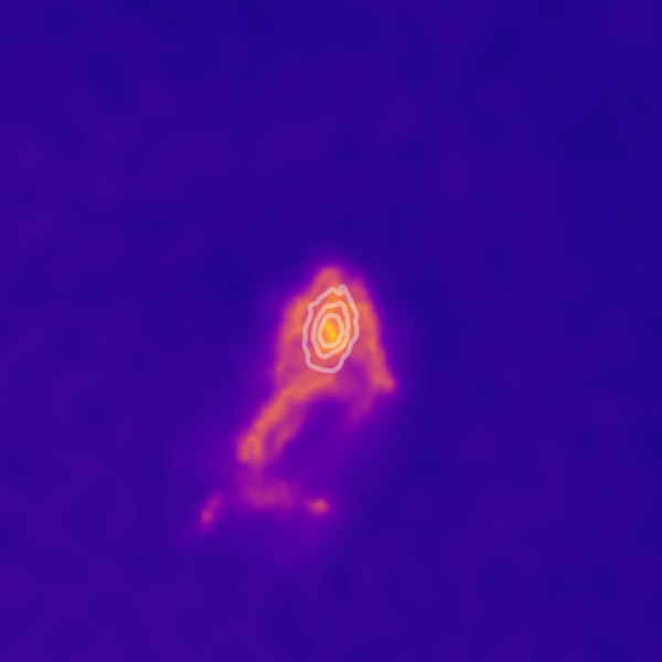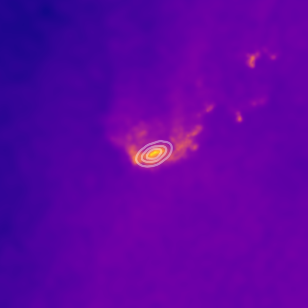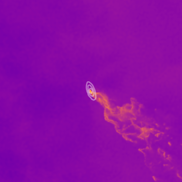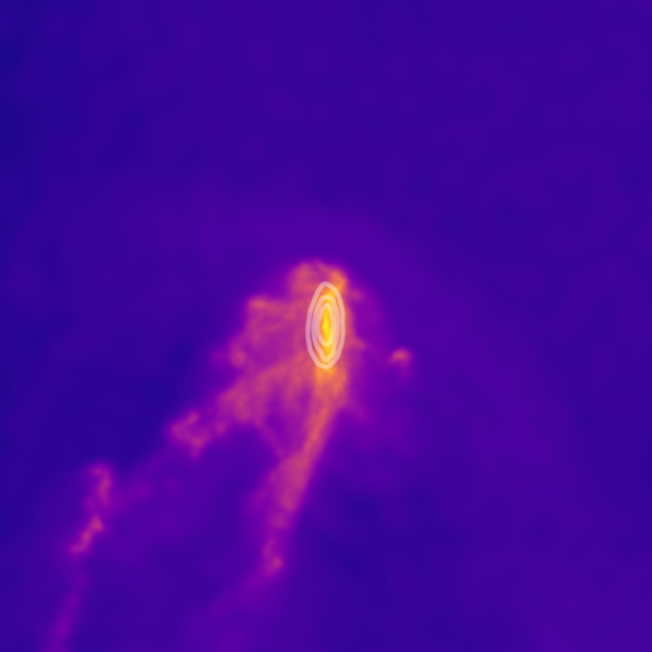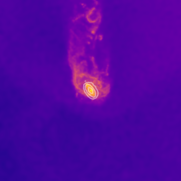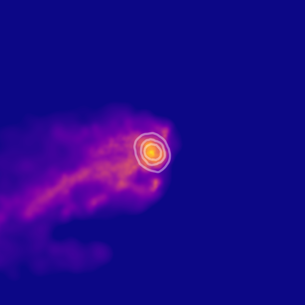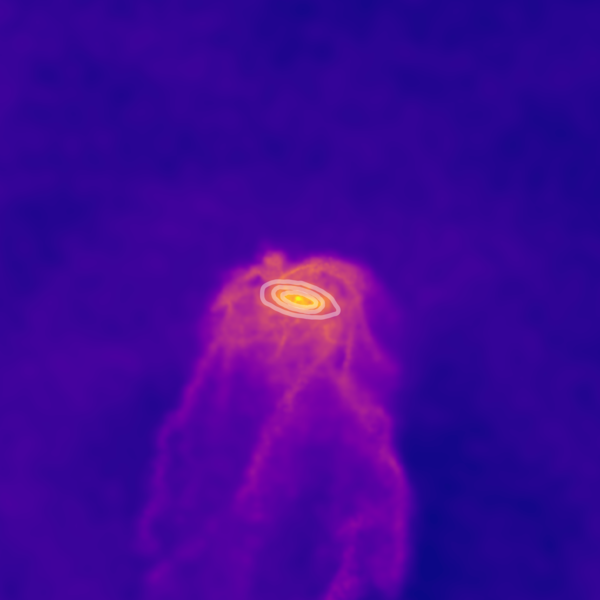 These images are taken from the Zooniverse Cosmological Jellyfish project, see Zinger+ (2023). They show a visualization of projected gas density, overlaid with contours of stellar density, for galaxies which were voted as "Jellyfish" by citizen scientists. Each galaxy was classified twenty times, and sixteen or more positive classifications were required to accept the object as a high probability Jellyfish. Contains a mix of galaxies from TNG50 and TNG100 across multiple redshifts.
