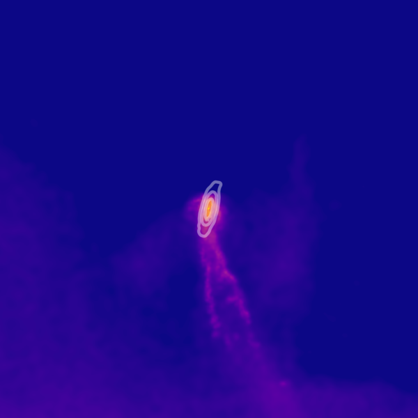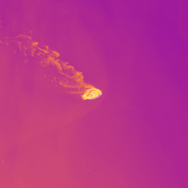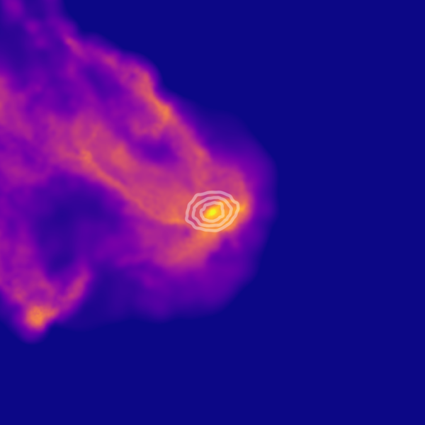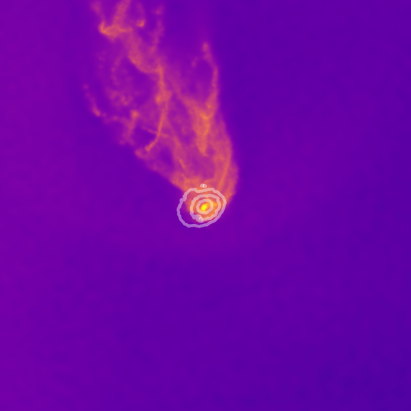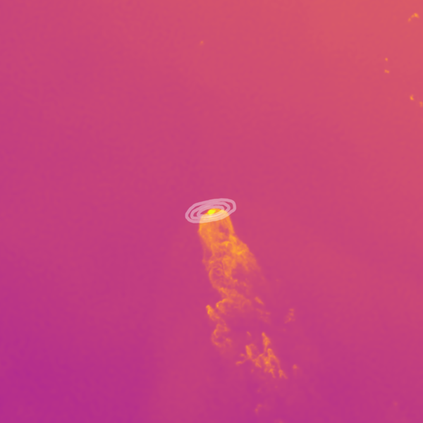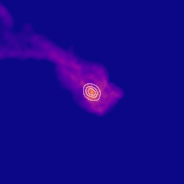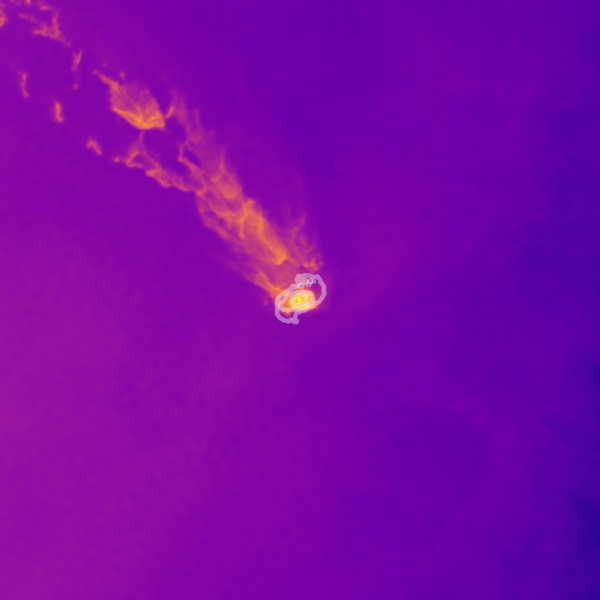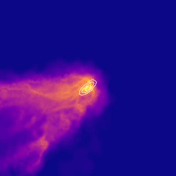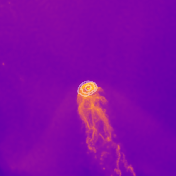 These images are taken from the Zooniverse Cosmological Jellyfish project, see Zinger+ (2023). They show a visualization of projected gas density, overlaid with contours of stellar density, for galaxies which were voted as "Jellyfish" by citizen scientists. Each galaxy was classified twenty times, and sixteen or more positive classifications were required to accept the object as a high probability Jellyfish. Contains a mix of galaxies from TNG50 and TNG100 across multiple redshifts.
