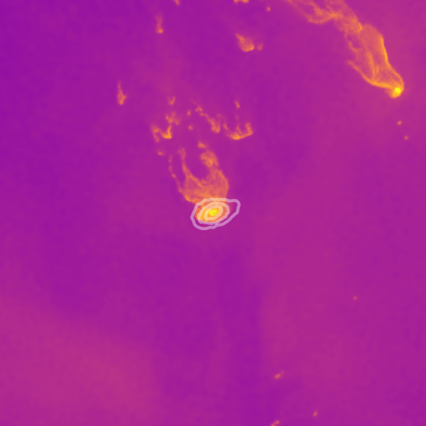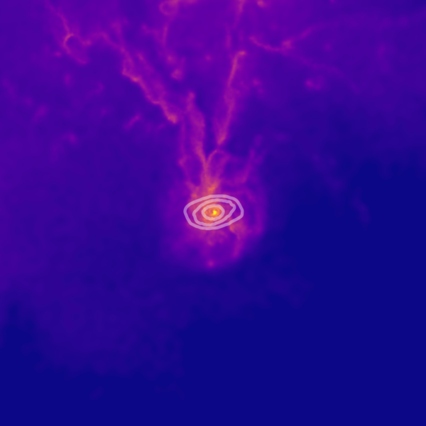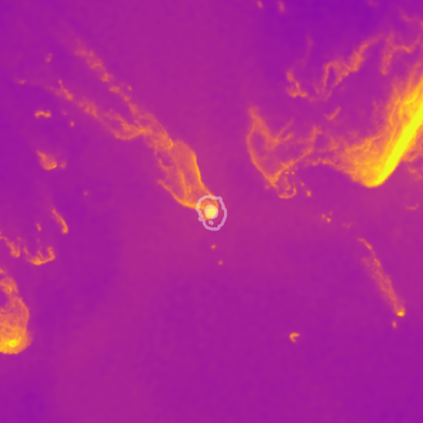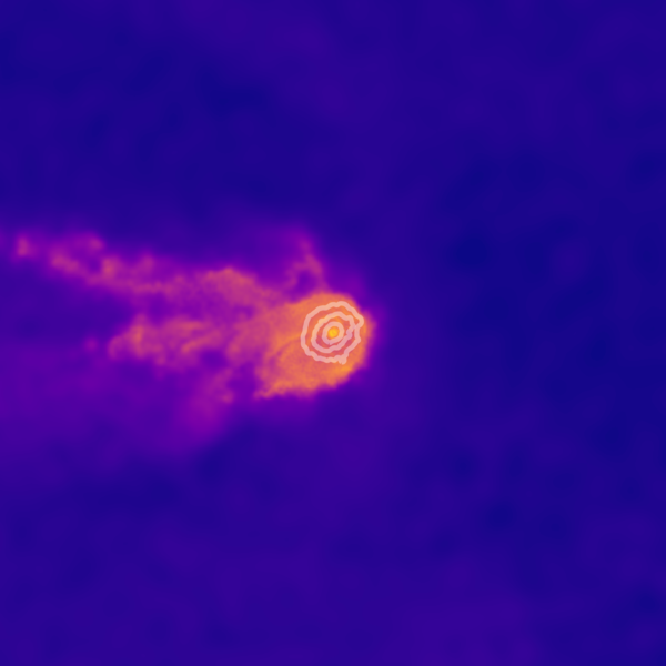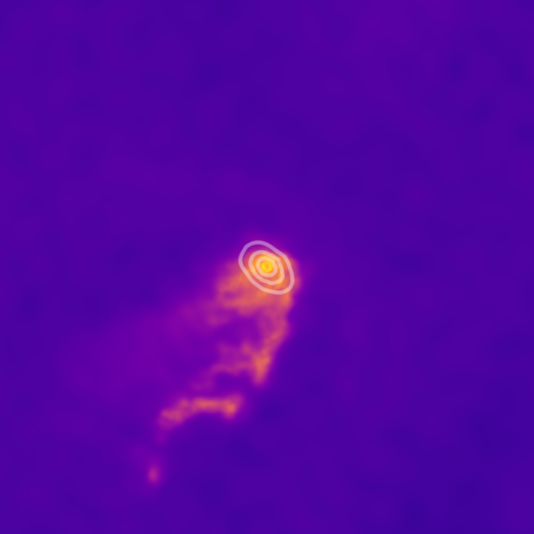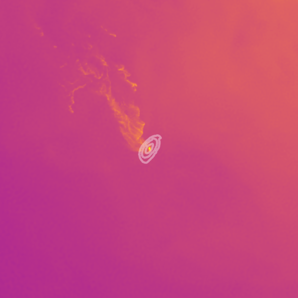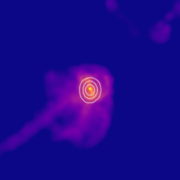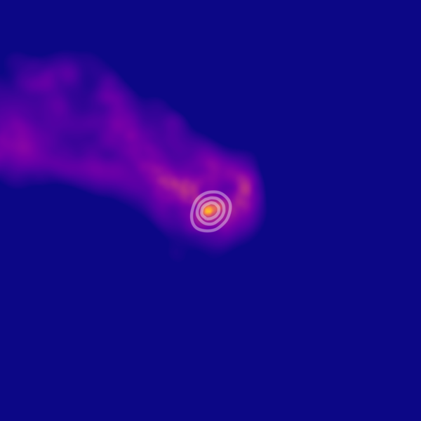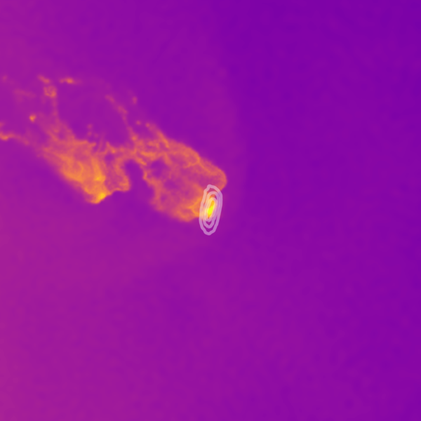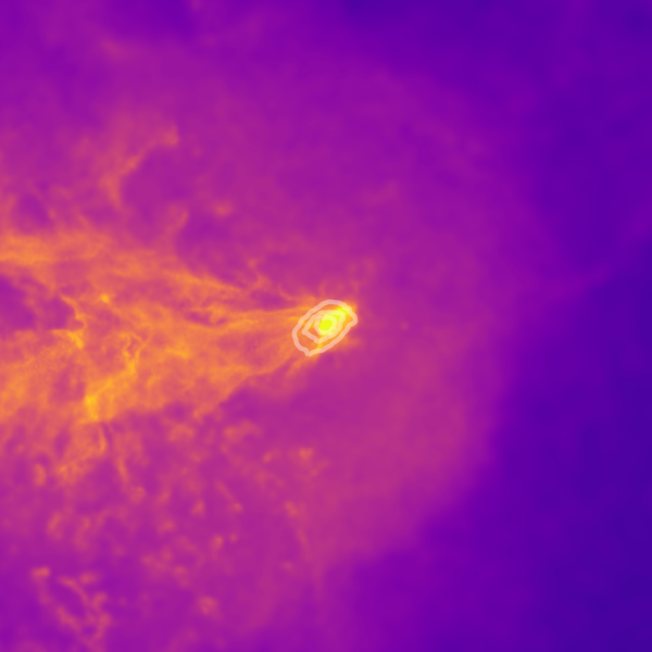 These images are taken from the Zooniverse Cosmological Jellyfish project, see Zinger+ (2023). They show a visualization of projected gas density, overlaid with contours of stellar density, for galaxies which were voted as "Jellyfish" by citizen scientists. Each galaxy was classified twenty times, and sixteen or more positive classifications were required to accept the object as a high probability Jellyfish. Contains a mix of galaxies from TNG50 and TNG100 across multiple redshifts.