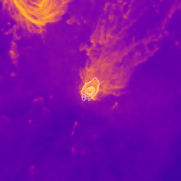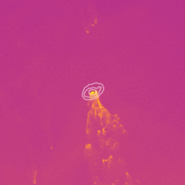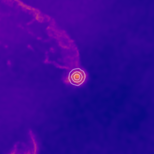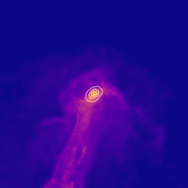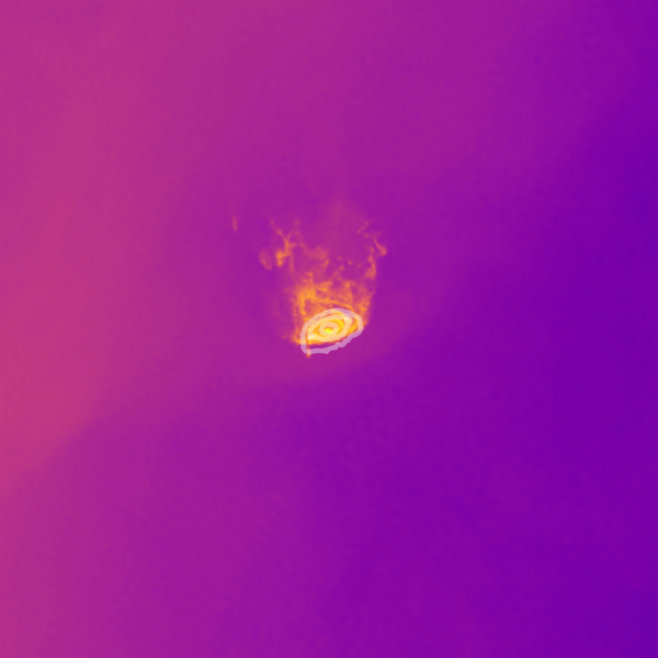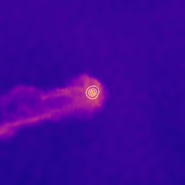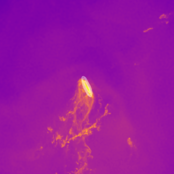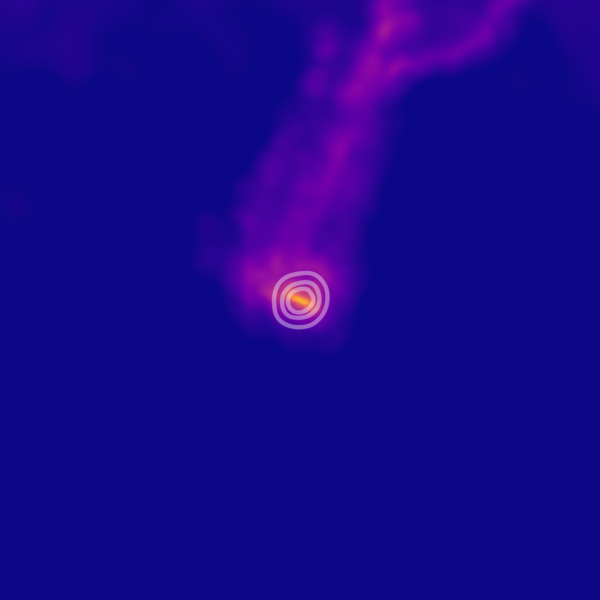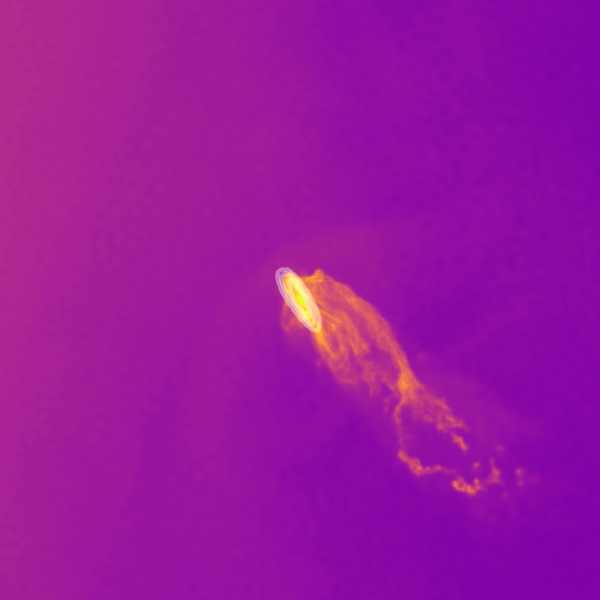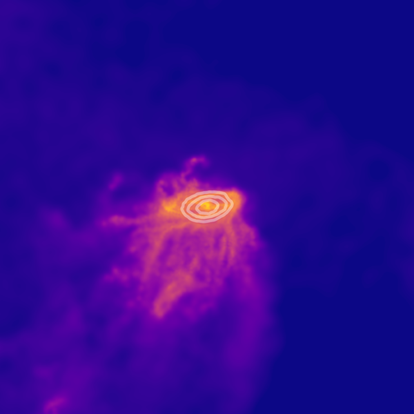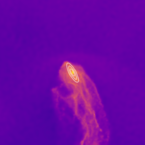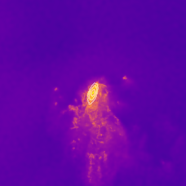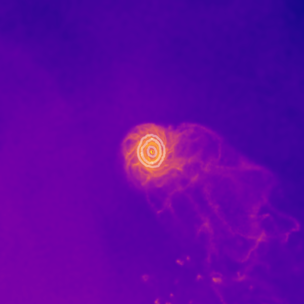 These images are taken from the Zooniverse Cosmological Jellyfish project, see Zinger+ (2023). They show a visualization of projected gas density, overlaid with contours of stellar density, for galaxies which were voted as "Jellyfish" by citizen scientists. Each galaxy was classified twenty times, and sixteen or more positive classifications were required to accept the object as a high probability Jellyfish. Contains a mix of galaxies from TNG50 and TNG100 across multiple redshifts.