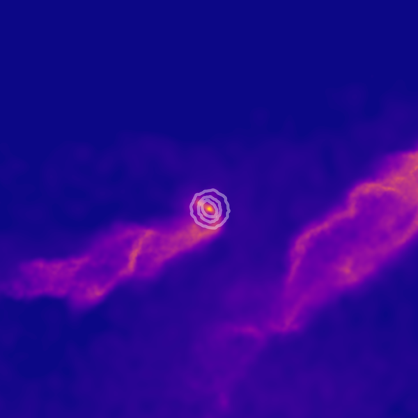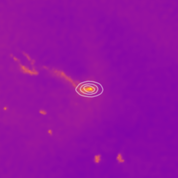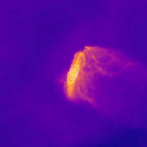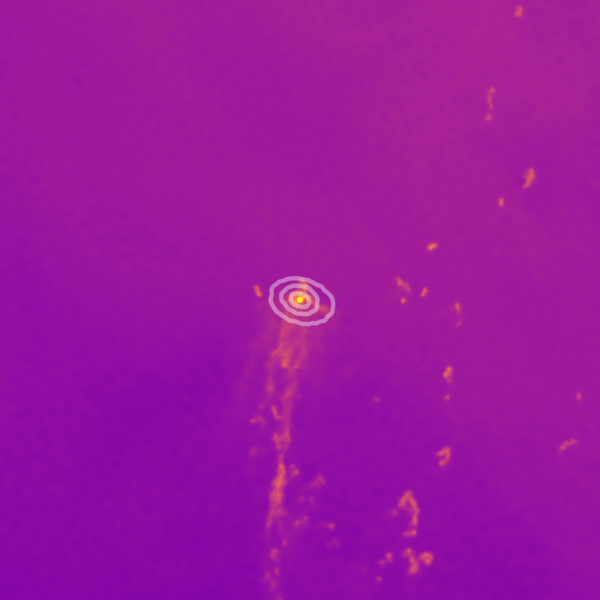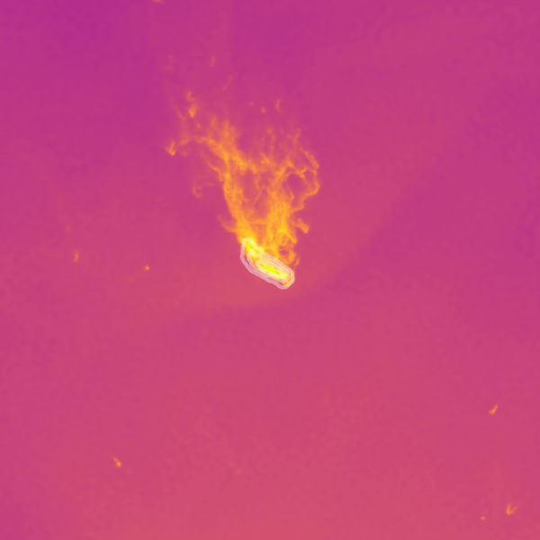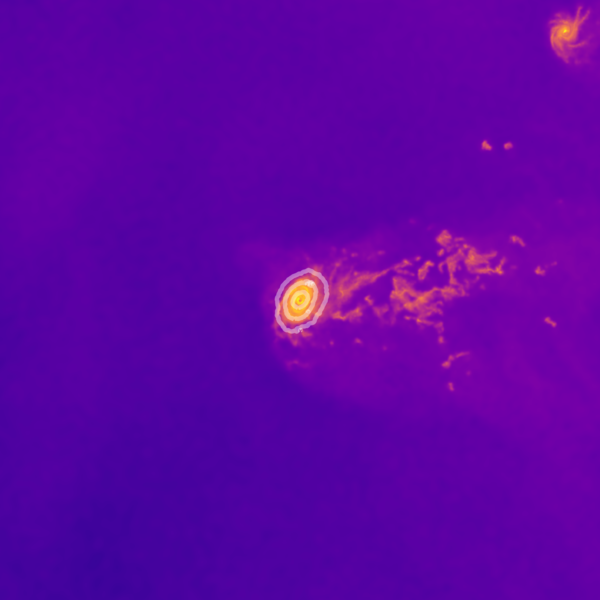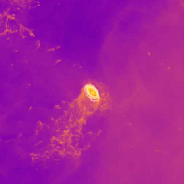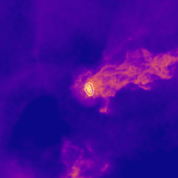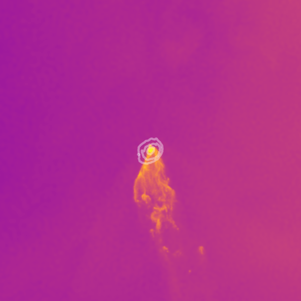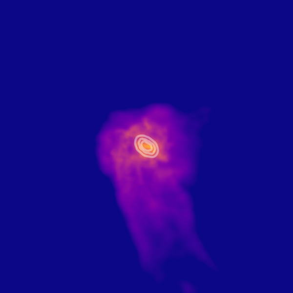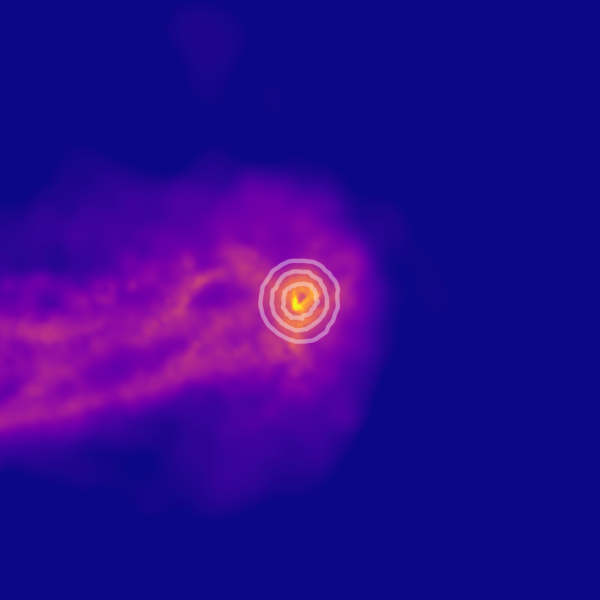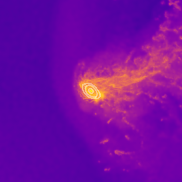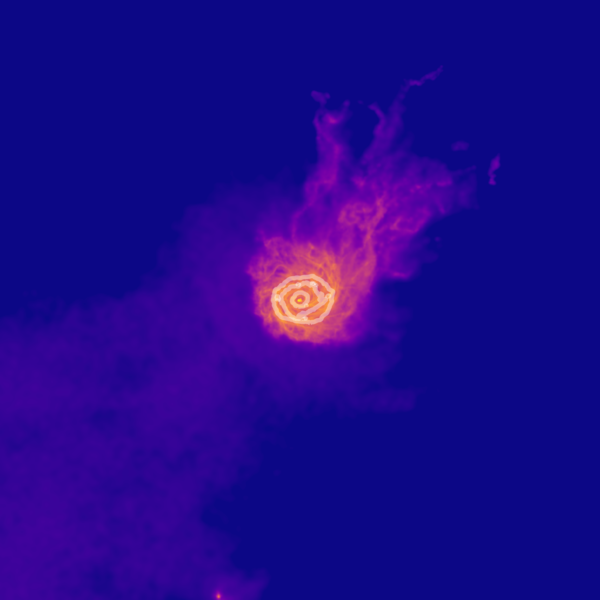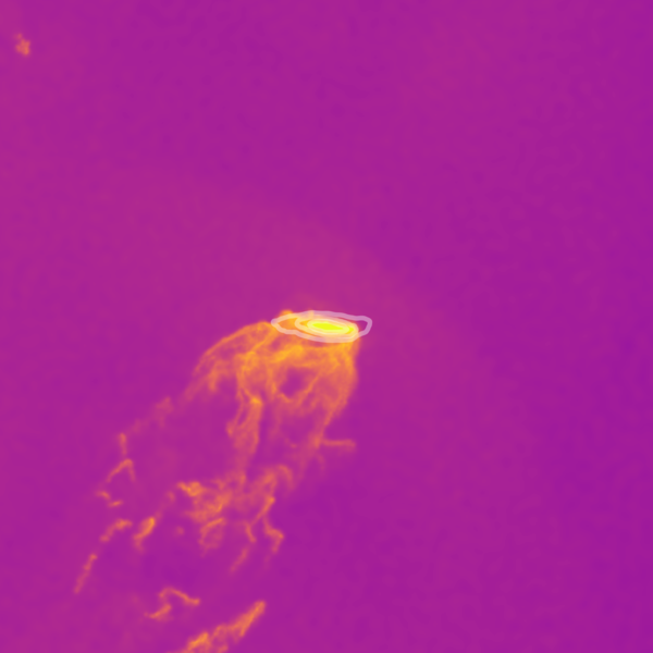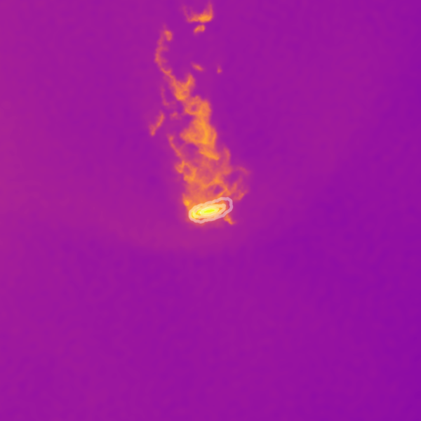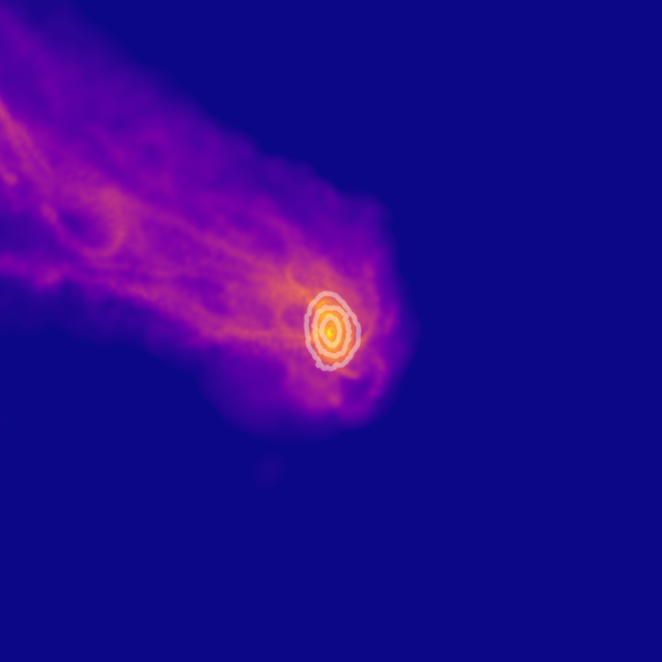 These images are taken from the Zooniverse Cosmological Jellyfish project, see Zinger+ (2023). They show a visualization of projected gas density, overlaid with contours of stellar density, for galaxies which were voted as "Jellyfish" by citizen scientists. Each galaxy was classified twenty times, and sixteen or more positive classifications were required to accept the object as a high probability Jellyfish. Contains a mix of galaxies from TNG50 and TNG100 across multiple redshifts.